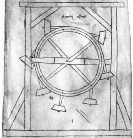Jedním z nich je obléhací stroj nebo hydraulická pila, která pomocí pohonu vodním kolem na hřídeli umožňuje řezání dlouhých špalků. Jestli sám byl jejím konstruktérem, nebo ji jenom někde viděl, ovšem není jisté.