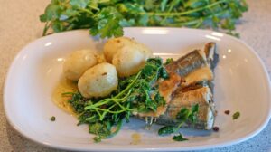 Pierre si během svých úvah všimne odloženého košíku plného natrhaných bylinek. „S tím už by se dalo něco podniknout,“ pomyslí si. Napadne ho, že by šlo přidat šťovík k šalotce a zalít vše smetanou, vermutem a bílým vínem.