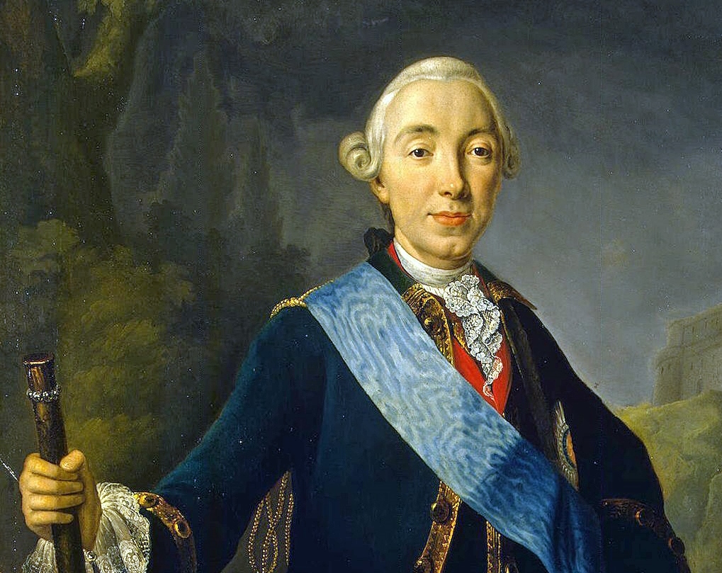 Na pohřbu své tety, carevny Alžběty (1709–1762), neustále mění způsob chůze, kdy se chvíli pohybuje šnečí rychlostí, aby po chvíli prudce zrychlil. Sluhové, kteří mu nesou vlečku, tak padají jako domino.