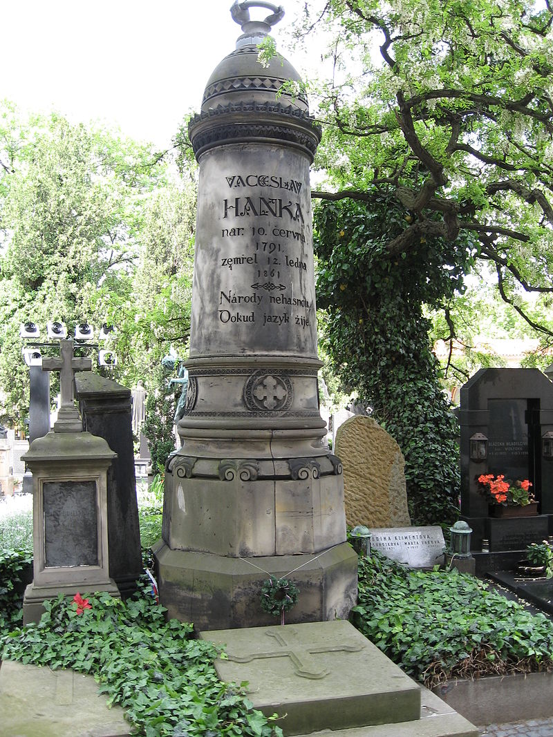 „Objevitel“ Rukopisů královédvorského a zelenohorského Václav Hanka (1791–1861) za svého života vzbuzuje nadšení pro všechno české, a tak mu Pražané po jeho smrti rádi splní sen být pochován na Vyšehradě.