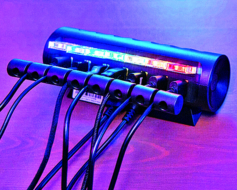 Do něj lze pak zapojovat další zařízení – tiskárnu, fotoaparát, monitor… Přehled má uživatel díky designově vychytanému osvětlení pomocí led. Vše lze vypnout tlačítkem, rozbočovač má také svůj vlastní zdroj elektřiny. Tenhle technický pomocník vyrobený z plastu se prodává pouze v černé barvě.