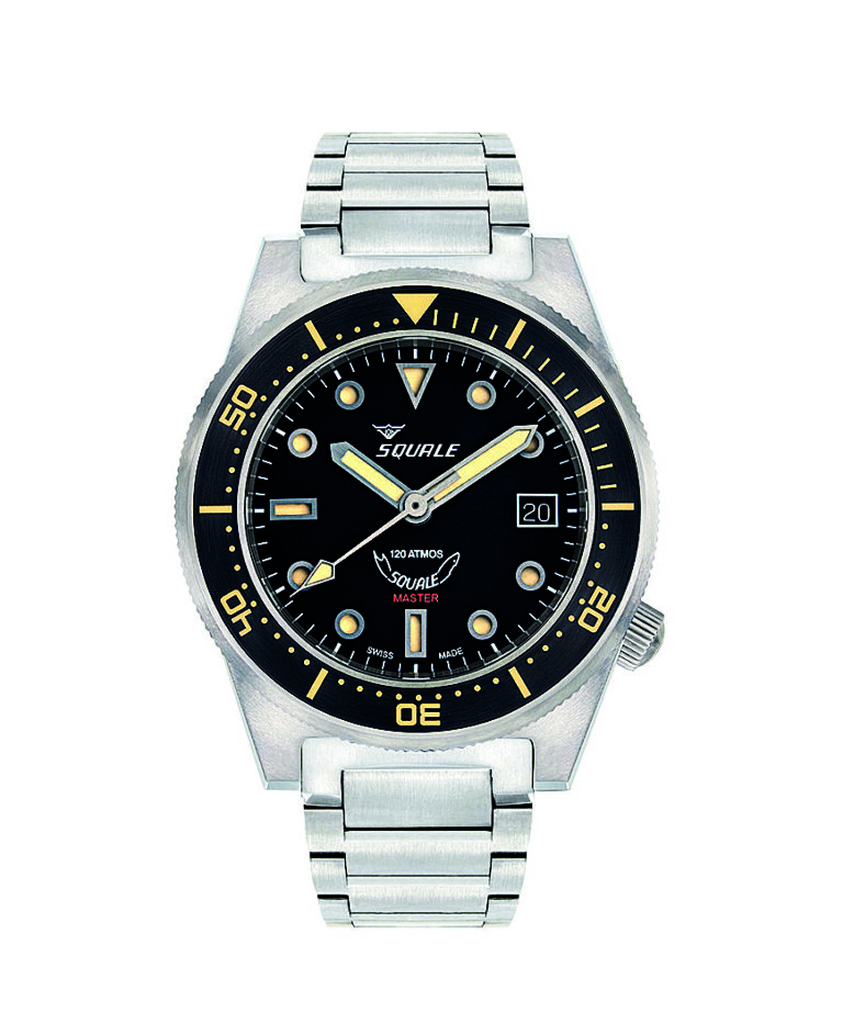 Squale Master Titanium 120 ATM, s průměrem 42 mm a výškou 15,5 mm, nabízí robustní konstrukci bez zbytečného zatížení zápěstí. Číselník, složený ze tří vrstev včetně luminiscenční SuperLumiNova Old Radium vytváří vintážní atmosféru pod 4mm klenutým sklíčkem.
