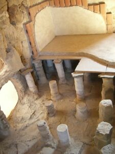 hypocaustum vyřešil důmyslně, topil v kotelně vedle domu a dovnitř domu pouštěl horký vzduch pod dlážděnou podlahou. Ta byla umístěna na 80 cm vysokých cihlových sloupcích. Do místností se teplo dostávalo dutými cihlami ve stěnách. Údajně dokázalo místnost vytopit i na 30 ºC.