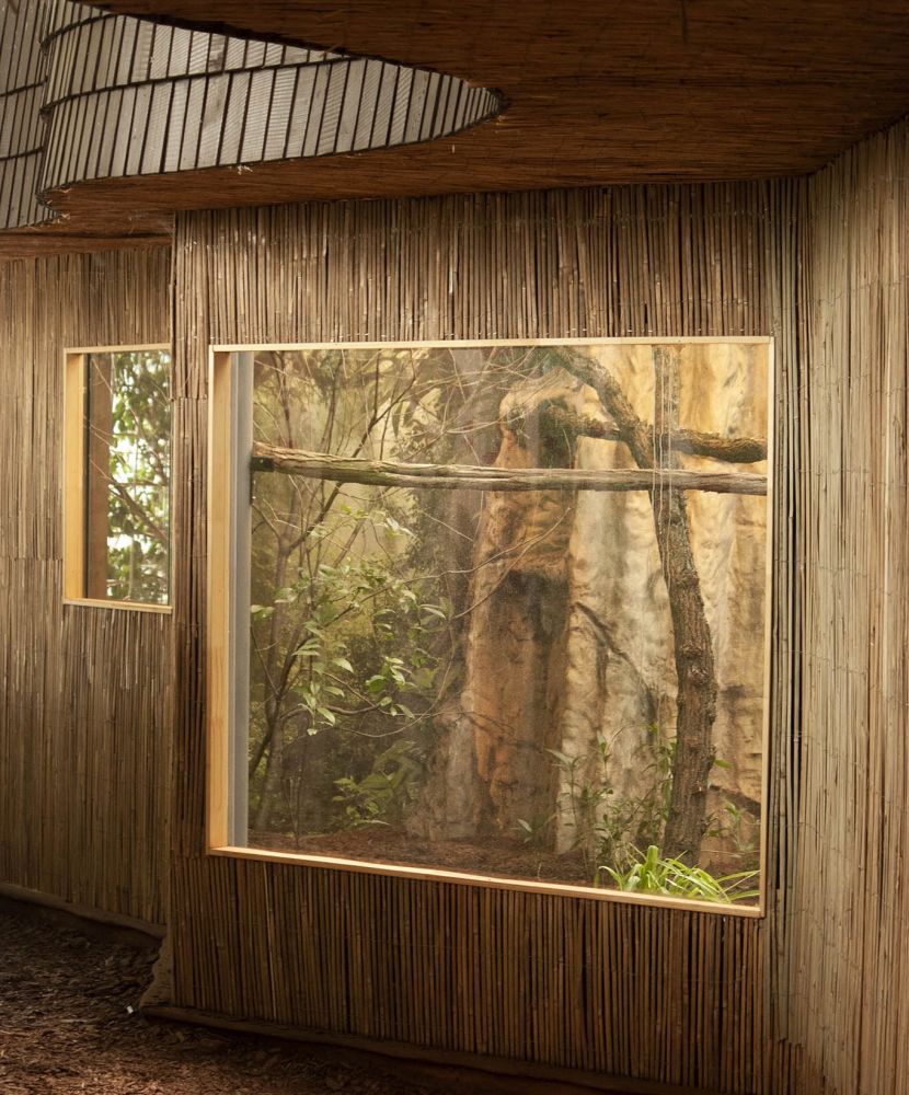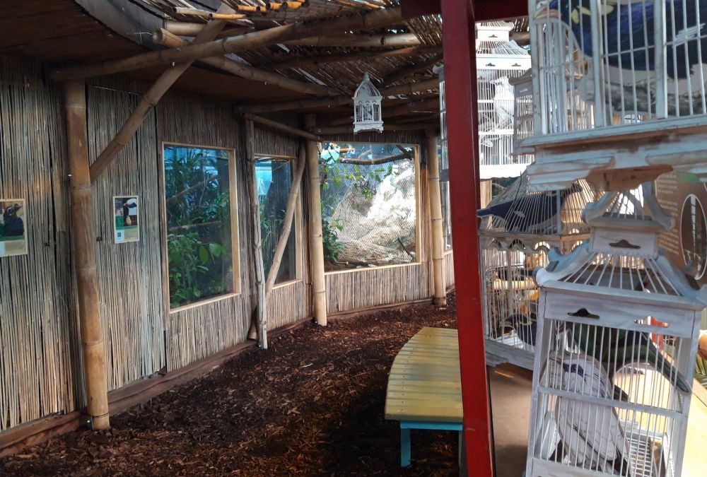 Součástí jedné z expozic je i uměle vybudovaný vodopád, další zase zdobí přírodní bambusové dekorace. Ty dopřávají chovaným jedincům více klidu a možnosti úkrytu, kterých v původních malých celoskleněných voliérách mnoho neměli.