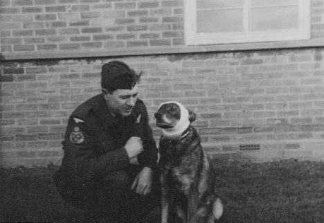 Vyděšené štěně německého ovčáka. Němci však tušili, že někde poblíž jsou dva sestřelení letci. Bozděch si byl vědom, že kdyby jako Čech padl nacistům do rukou, nic pěkného by jej nečekalo.
