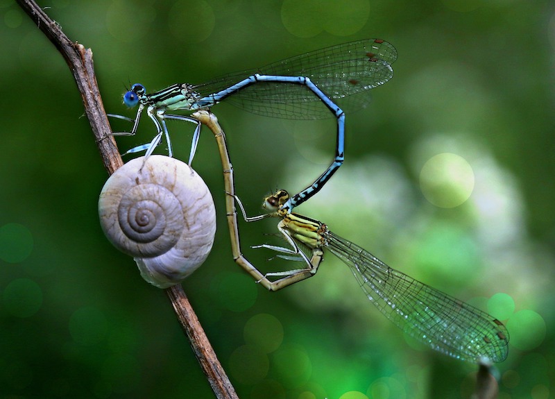V životě každého druhu vážek je zásadním obdobím čas páření. Sameček má k dispozici dva kopulační orgány a před samotnou kopulací musí přenést sperma z prvotního na ten druhotní.