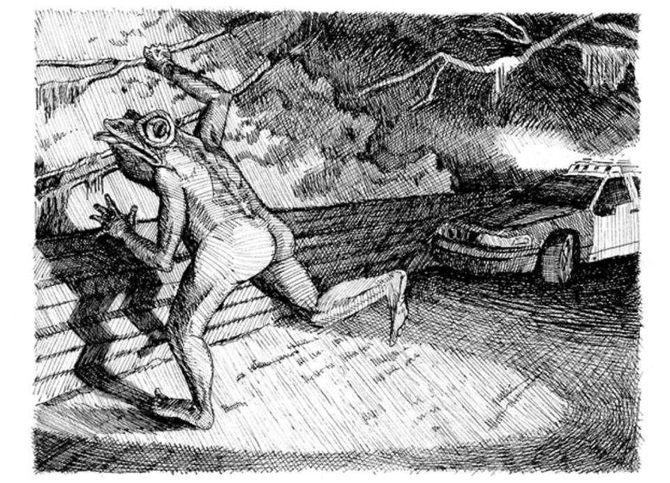 Ostřílený Mark Matthews povídačkám o žabím muži sice nevěří, podivný příběh mu ale stejně vrtá hlavou. Bouři myšlenek najednou přeruší jakési zvíře, které mu přeběhne přes cestu.