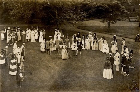 Na trávníku pak něco kreslí vznešená žena v rokokových šatech. Co se děje? Jde snad o nějakou historickou rekonstrukci?