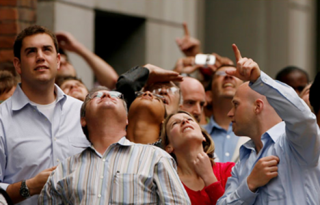 Když stroj prolétá nad místní továrnou, přihlížejícím se zdá, že se z něj dolů snáší jakési předměty. Pak však bombardér i s odhazovanými bombami zmizí. Scéna se podle svědků opakuje ještě asi desetkrát.