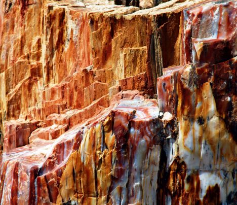 Jak takový les vlastně dokáže zkamenět? Postupně je pokryt vrstvou sedimentů. Z písku, který kmeny obsypal, se uvolní kyselina křemičitá, která dřevo impregnuje a poté jej pohltí.