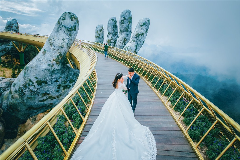 Dvě obrovské ruce, deroucí se ze zeleně džungle. Mohutné dlaně, které lehce opatrovávají zlatou lávku, po níž se prochází stovky lidí. Chlouba Vietnamu. Ve výšce úctyhodných 1400 metrů nad mořem máte pocit, že se procházíte v oblacích.